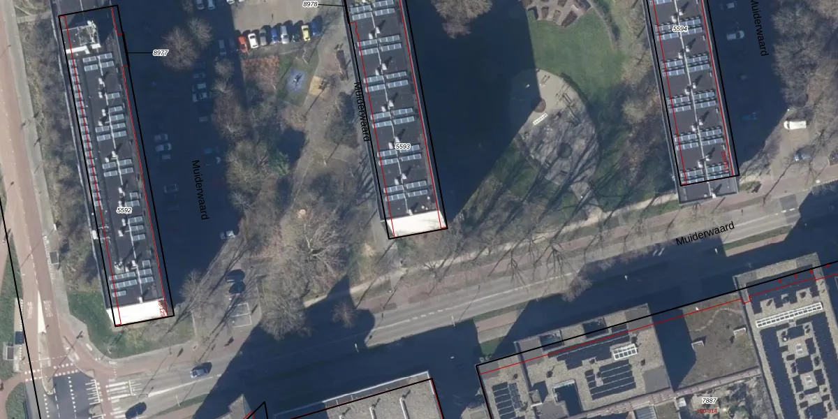 Het perceel waarop Muiderwaard 175 staat heeft een oppervlakte van 947 m². Dit is een groot perceel. De perceeloppervlakte wordt geregistreerd door het Kadaster. Gedetailleerde informatie over de maten van dit perceel kunt u vinden in het rapport Kadastrale kaart met maatvoering van Muiderwaard 175.