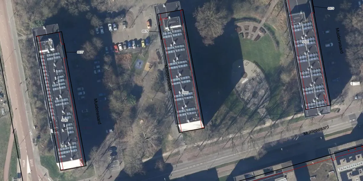 Het perceel waarop Muiderwaard 213 staat heeft een oppervlakte van 947 m². Dit is een groot perceel. De perceeloppervlakte wordt geregistreerd door het Kadaster. Gedetailleerde informatie over de maten van dit perceel kunt u vinden in het rapport Kadastrale kaart met maatvoering van Muiderwaard 213.