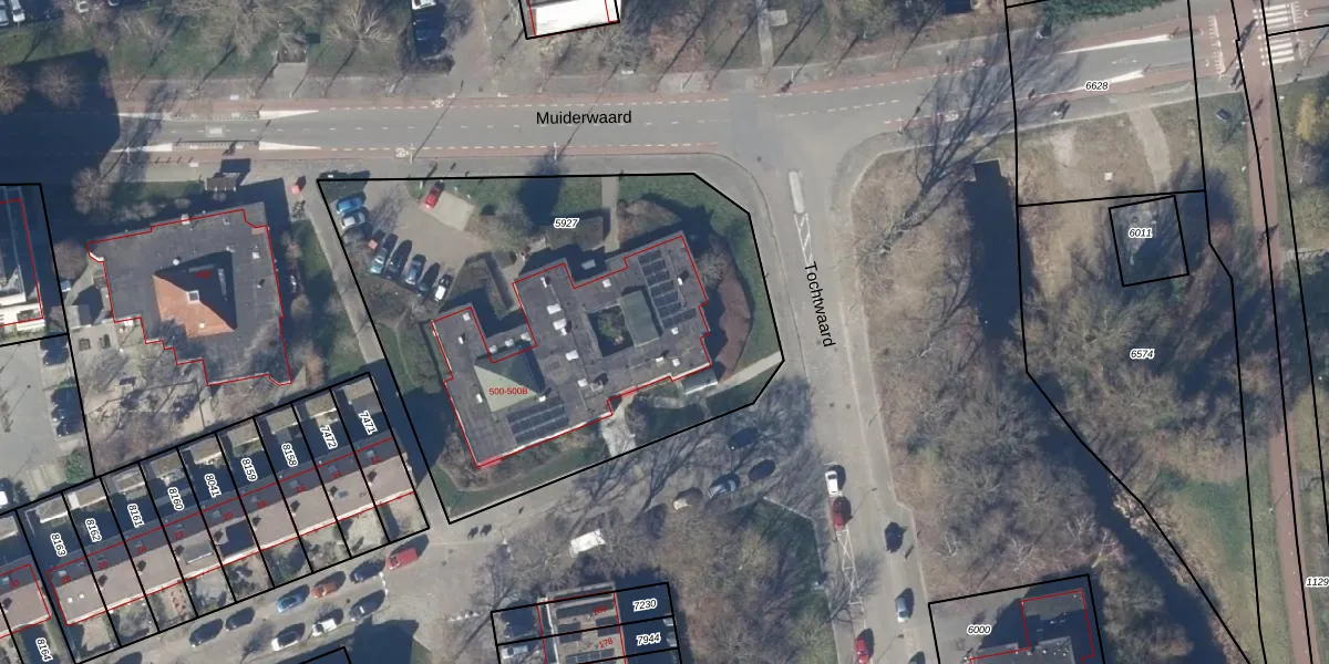 Muiderwaard 500 is gelegen op kadastraal perceel AMR01C5927. Deze kadastrale aanduiding is uniek en wordt gebruikt door het Kadaster om eigendomsrechten en andere zakelijke rechten vast te leggen. Het perceel maakt onderdeel uit van de kadastrale gemeente Alkmaar.