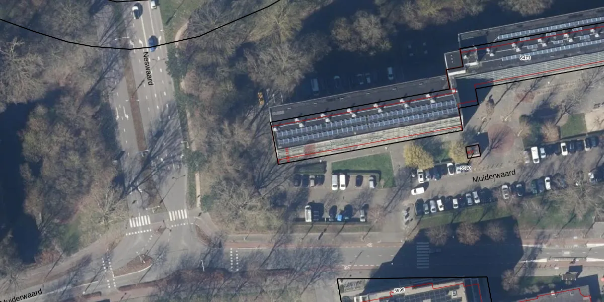 Het perceel waarop Muiderwaard 553 staat heeft een oppervlakte van 2773 m². Dit is een zeer groot perceel. De perceeloppervlakte wordt geregistreerd door het Kadaster. Gedetailleerde informatie over de maten van dit perceel kunt u vinden in het rapport Kadastrale kaart met maatvoering van Muiderwaard 553.