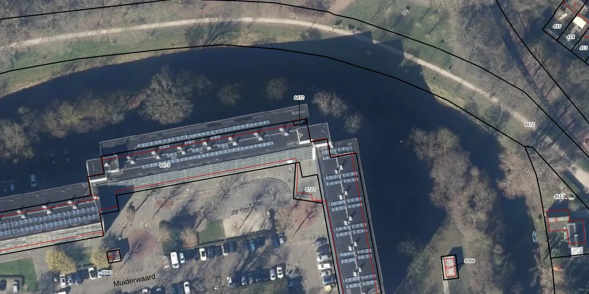 Het perceel waarop Muiderwaard 627 staat heeft een oppervlakte van 2773 m². Dit is een zeer groot perceel. De perceeloppervlakte wordt geregistreerd door het Kadaster. Gedetailleerde informatie over de maten van dit perceel kunt u vinden in het rapport Kadastrale kaart met maatvoering van Muiderwaard 627.