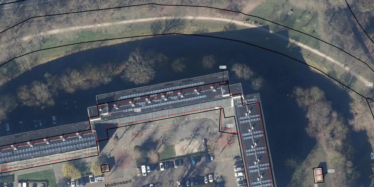 Het perceel waarop Muiderwaard 655 staat heeft een oppervlakte van 2773 m². Dit is een zeer groot perceel. De perceeloppervlakte wordt geregistreerd door het Kadaster. Gedetailleerde informatie over de maten van dit perceel kunt u vinden in het rapport Kadastrale kaart met maatvoering van Muiderwaard 655.
