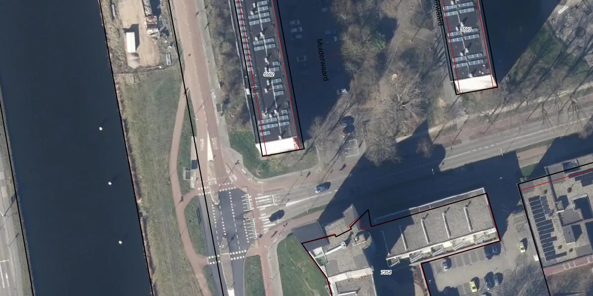 Het perceel waarop Muiderwaard 77 staat heeft een oppervlakte van 1074 m². Dit is een zeer groot perceel. De perceeloppervlakte wordt geregistreerd door het Kadaster. Gedetailleerde informatie over de maten van dit perceel kunt u vinden in het rapport Kadastrale kaart met maatvoering van Muiderwaard 77.