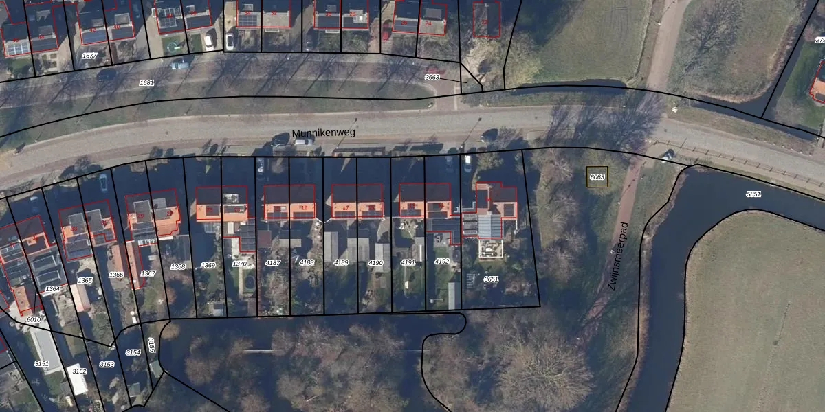 Gebruik de zoekbalk of klik op een perceel voor informatie over de adressen binnen dit perceel.