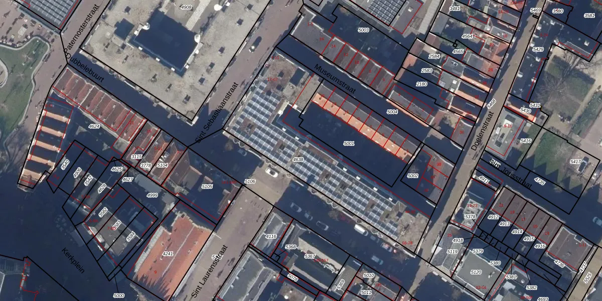 Het perceel waarop Museumstraat 49 staat heeft een oppervlakte van 1488 m². Dit is een zeer groot perceel. De perceeloppervlakte wordt geregistreerd door het Kadaster. Gedetailleerde informatie over de maten van dit perceel kunt u vinden in het rapport Kadastrale kaart met maatvoering van Museumstraat 49.