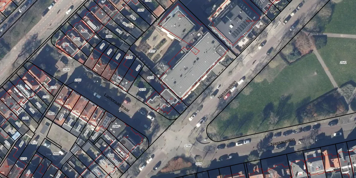 Het perceel waarop Nassauplein 11-M staat heeft een oppervlakte van 1848 m². Dit is een zeer groot perceel. De perceeloppervlakte wordt geregistreerd door het Kadaster. Gedetailleerde informatie over de maten van dit perceel kunt u vinden in het rapport Kadastrale kaart met maatvoering van Nassauplein 11-M.
