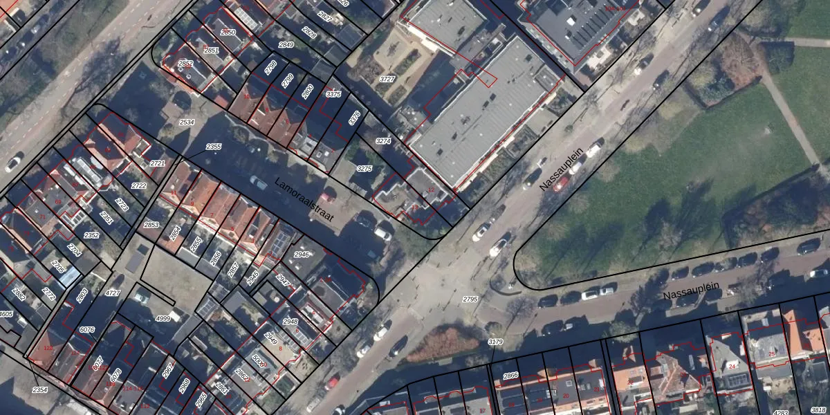 Het perceel waarop Nassauplein 13 staat heeft een oppervlakte van 281 m². Dit is een middelgroot perceel. De perceeloppervlakte wordt geregistreerd door het Kadaster. Gedetailleerde informatie over de maten van dit perceel kunt u vinden in het rapport Kadastrale kaart met maatvoering van Nassauplein 13.