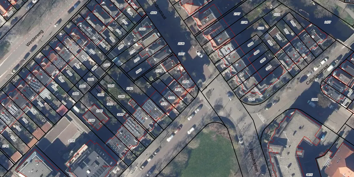 Gebruik de zoekbalk of klik op een perceel voor informatie over de adressen binnen dit perceel.