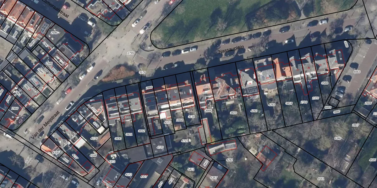 Het perceel waarop Nassauplein 21 staat heeft een oppervlakte van 213 m². Dit is een middelgroot perceel. De perceeloppervlakte wordt geregistreerd door het Kadaster. Gedetailleerde informatie over de maten van dit perceel kunt u vinden in het rapport Kadastrale kaart met maatvoering van Nassauplein 21.