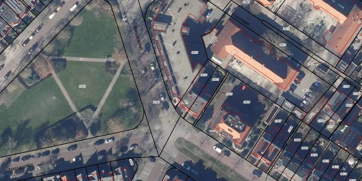 Het perceel waarop Nassauplein 33 staat heeft een oppervlakte van 1658 m². Dit is een zeer groot perceel. De perceeloppervlakte wordt geregistreerd door het Kadaster. Gedetailleerde informatie over de maten van dit perceel kunt u vinden in het rapport Kadastrale kaart met maatvoering van Nassauplein 33.