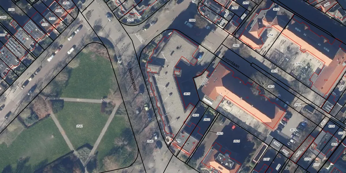 Het perceel waarop Nassauplein 60 staat heeft een oppervlakte van 1658 m². Dit is een zeer groot perceel. De perceeloppervlakte wordt geregistreerd door het Kadaster. Gedetailleerde informatie over de maten van dit perceel kunt u vinden in het rapport Kadastrale kaart met maatvoering van Nassauplein 60.