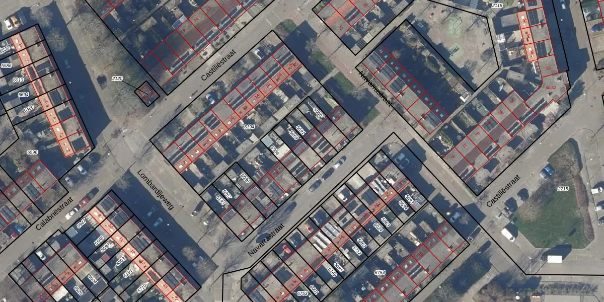 Gebruik de zoekbalk of klik op een perceel voor informatie over de adressen binnen dit perceel.