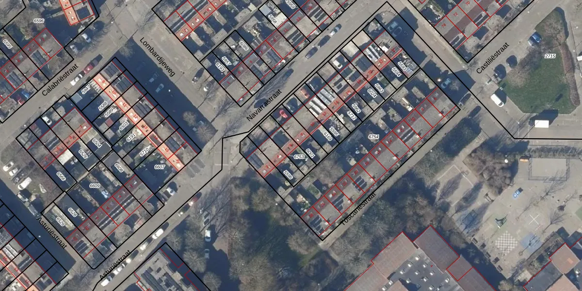 Navarrastraat 6 is gelegen op kadastraal perceel AMR01I6753. Deze kadastrale aanduiding is uniek en wordt gebruikt door het Kadaster om eigendomsrechten en andere zakelijke rechten vast te leggen. Het perceel maakt onderdeel uit van de kadastrale gemeente Alkmaar.