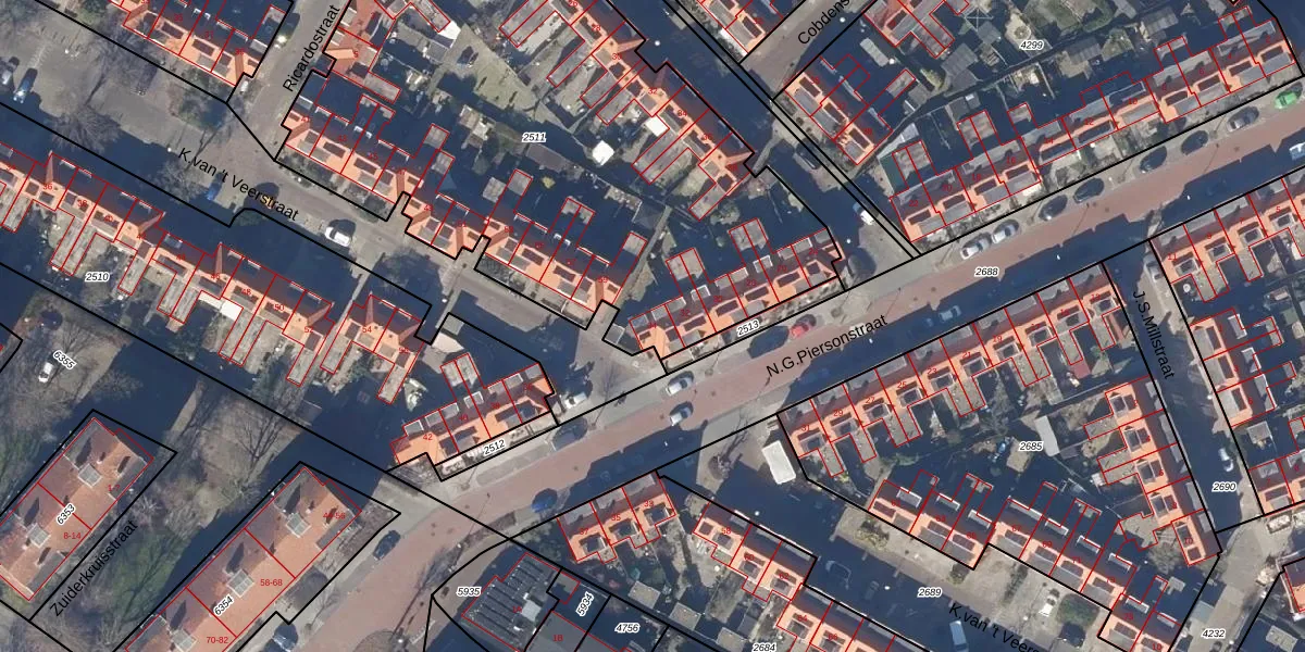 Het perceel waarop N.G.Piersonstraat 34 staat heeft een oppervlakte van 3285 m². Dit is een zeer groot perceel. De perceeloppervlakte wordt geregistreerd door het Kadaster. Gedetailleerde informatie over de maten van dit perceel kunt u vinden in het rapport Kadastrale kaart met maatvoering van N.G.Piersonstraat 34.