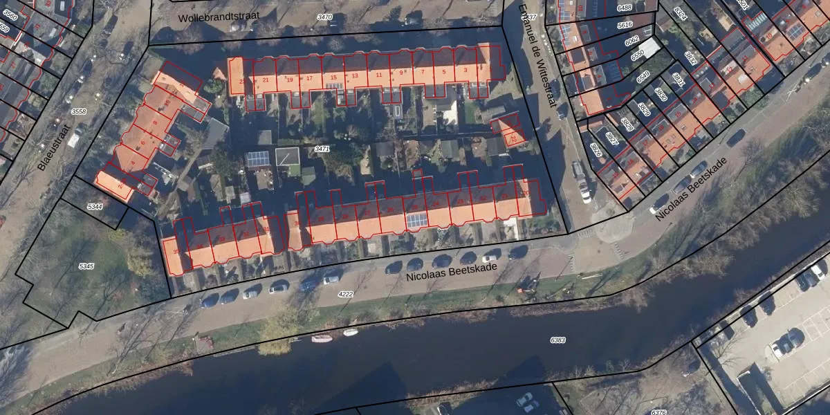 Het perceel waarop Nicolaas Beetskade 25 staat heeft een oppervlakte van 5520 m². Dit is een zeer groot perceel. De perceeloppervlakte wordt geregistreerd door het Kadaster. Gedetailleerde informatie over de maten van dit perceel kunt u vinden in het rapport Kadastrale kaart met maatvoering van Nicolaas Beetskade 25.