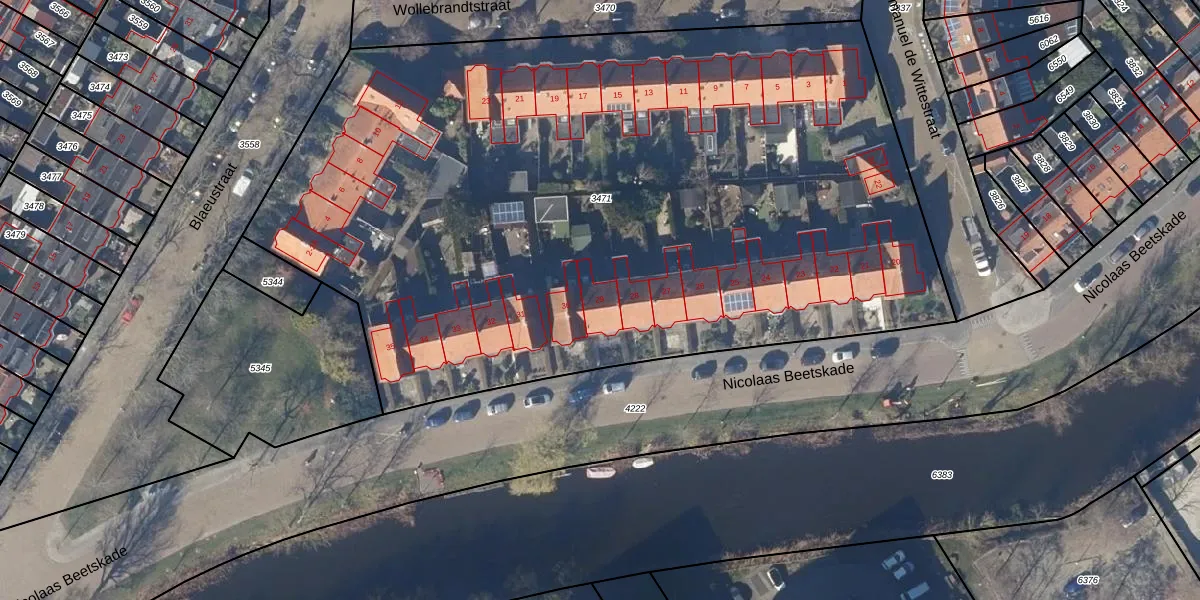 Het perceel waarop Nicolaas Beetskade 29 staat heeft een oppervlakte van 5520 m². Dit is een zeer groot perceel. De perceeloppervlakte wordt geregistreerd door het Kadaster. Gedetailleerde informatie over de maten van dit perceel kunt u vinden in het rapport Kadastrale kaart met maatvoering van Nicolaas Beetskade 29.