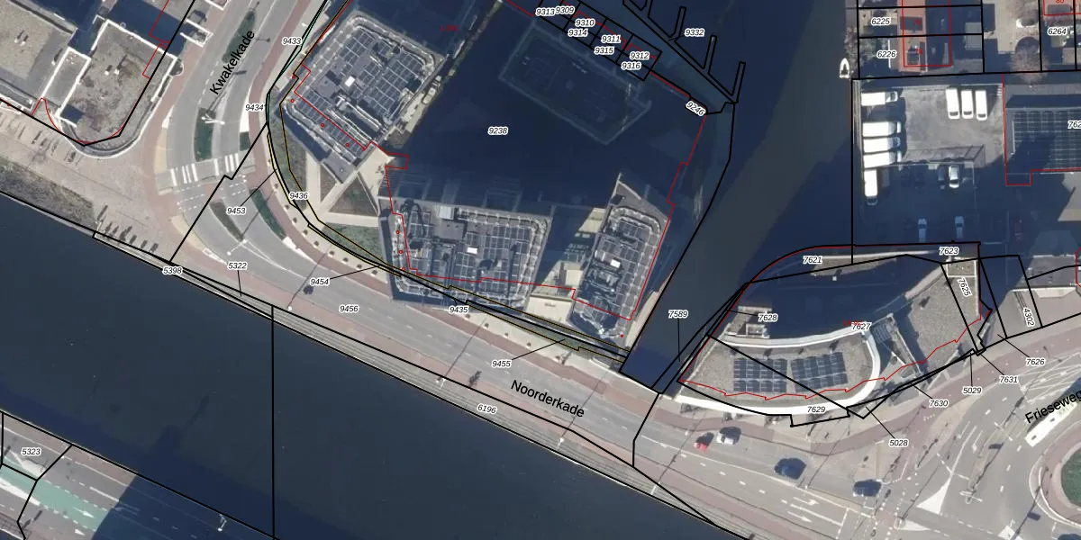 Het perceel waarop Noorderkade 1-D staat heeft een oppervlakte van 4333 m². Dit is een zeer groot perceel. De perceeloppervlakte wordt geregistreerd door het Kadaster. Gedetailleerde informatie over de maten van dit perceel kunt u vinden in het rapport Kadastrale kaart met maatvoering van Noorderkade 1-D.
