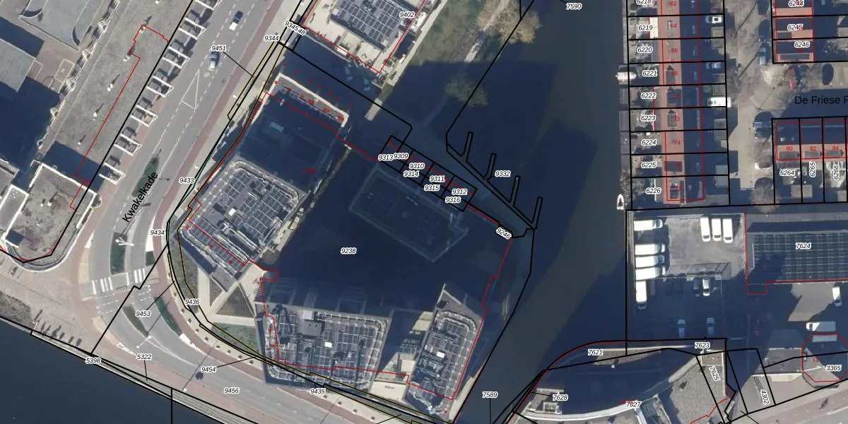 Het perceel waarop Noorderkade 13 staat heeft een oppervlakte van 4333 m². Dit is een zeer groot perceel. De perceeloppervlakte wordt geregistreerd door het Kadaster. Gedetailleerde informatie over de maten van dit perceel kunt u vinden in het rapport Kadastrale kaart met maatvoering van Noorderkade 13.