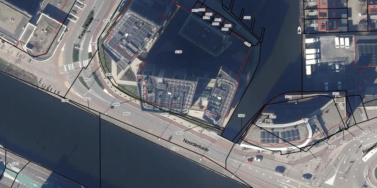 Het perceel waarop Noorderkade 2-C staat heeft een oppervlakte van 4333 m². Dit is een zeer groot perceel. De perceeloppervlakte wordt geregistreerd door het Kadaster. Gedetailleerde informatie over de maten van dit perceel kunt u vinden in het rapport Kadastrale kaart met maatvoering van Noorderkade 2-C.