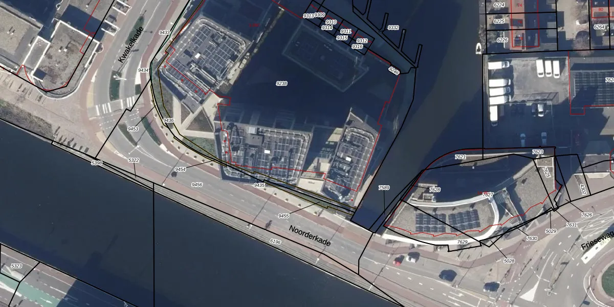 Het perceel waarop Noorderkade 2-D staat heeft een oppervlakte van 4333 m². Dit is een zeer groot perceel. De perceeloppervlakte wordt geregistreerd door het Kadaster. Gedetailleerde informatie over de maten van dit perceel kunt u vinden in het rapport Kadastrale kaart met maatvoering van Noorderkade 2-D.