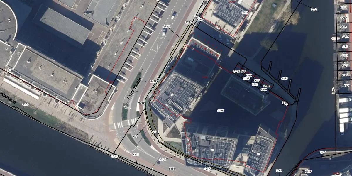 Het perceel waarop Noorderkade 20-J staat heeft een oppervlakte van 4333 m². Dit is een zeer groot perceel. De perceeloppervlakte wordt geregistreerd door het Kadaster. Gedetailleerde informatie over de maten van dit perceel kunt u vinden in het rapport Kadastrale kaart met maatvoering van Noorderkade 20-J.