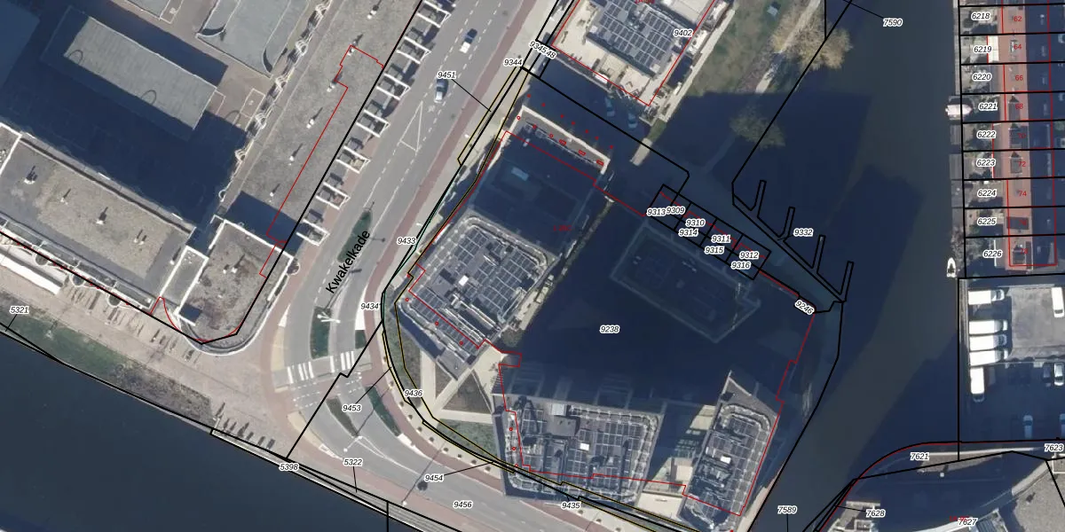 Het perceel waarop Noorderkade 22-F staat heeft een oppervlakte van 4333 m². Dit is een zeer groot perceel. De perceeloppervlakte wordt geregistreerd door het Kadaster. Gedetailleerde informatie over de maten van dit perceel kunt u vinden in het rapport Kadastrale kaart met maatvoering van Noorderkade 22-F.
