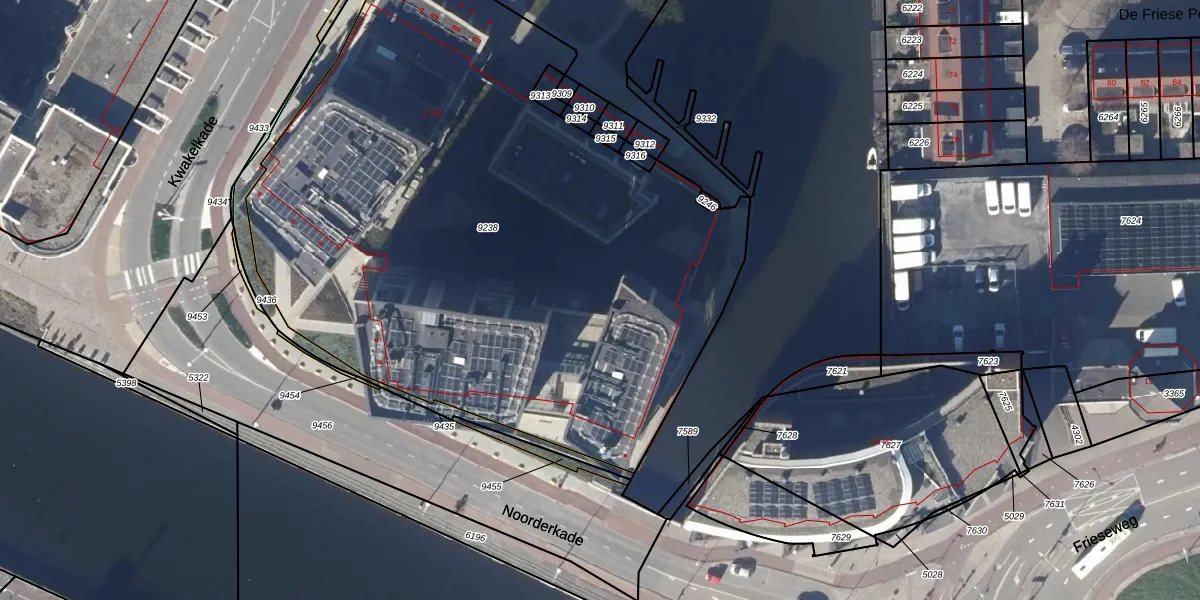 Het perceel waarop Noorderkade 6-G staat heeft een oppervlakte van 4333 m². Dit is een zeer groot perceel. De perceeloppervlakte wordt geregistreerd door het Kadaster. Gedetailleerde informatie over de maten van dit perceel kunt u vinden in het rapport Kadastrale kaart met maatvoering van Noorderkade 6-G.