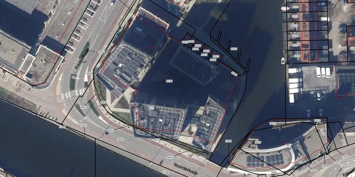 Het perceel waarop Noorderkade 8-B staat heeft een oppervlakte van 4333 m². Dit is een zeer groot perceel. De perceeloppervlakte wordt geregistreerd door het Kadaster. Gedetailleerde informatie over de maten van dit perceel kunt u vinden in het rapport Kadastrale kaart met maatvoering van Noorderkade 8-B.