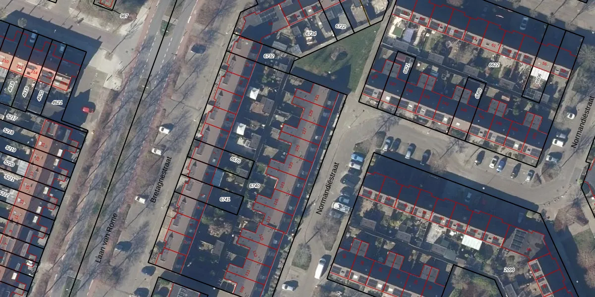 Het perceel waarop Normandiëstraat 125 staat heeft een oppervlakte van 3011 m². Dit is een zeer groot perceel. De perceeloppervlakte wordt geregistreerd door het Kadaster. Gedetailleerde informatie over de maten van dit perceel kunt u vinden in het rapport Kadastrale kaart met maatvoering van Normandiëstraat 125.
