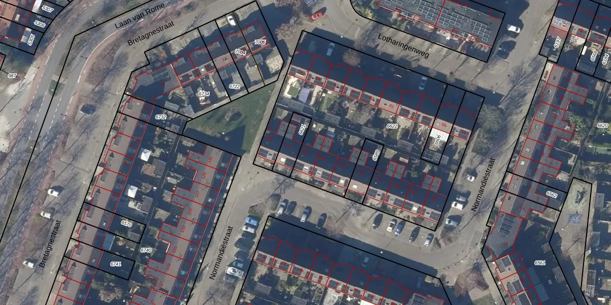 Het perceel waarop Normandiëstraat 139 staat heeft een oppervlakte van 2569 m². Dit is een zeer groot perceel. De perceeloppervlakte wordt geregistreerd door het Kadaster. Gedetailleerde informatie over de maten van dit perceel kunt u vinden in het rapport Kadastrale kaart met maatvoering van Normandiëstraat 139.