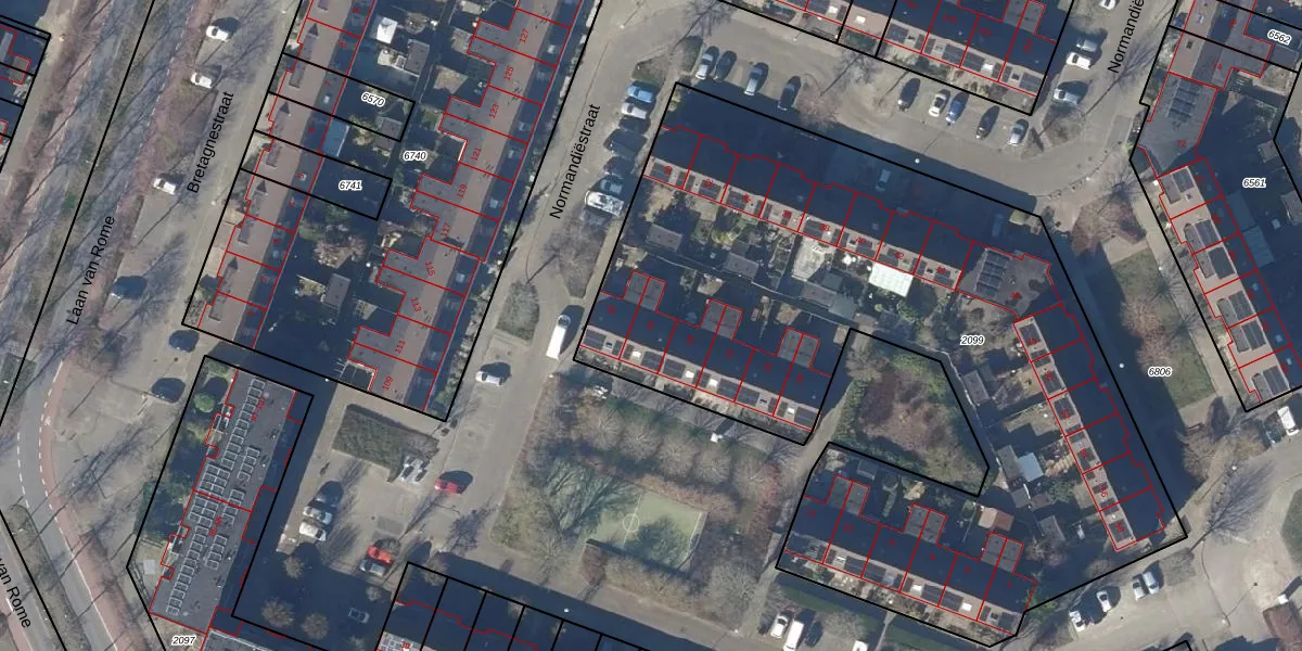Het perceel waarop Normandiëstraat 26 staat heeft een oppervlakte van 4085 m². Dit is een zeer groot perceel. De perceeloppervlakte wordt geregistreerd door het Kadaster. Gedetailleerde informatie over de maten van dit perceel kunt u vinden in het rapport Kadastrale kaart met maatvoering van Normandiëstraat 26.