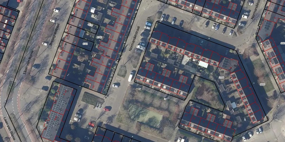 Het perceel waarop Normandiëstraat 28 staat heeft een oppervlakte van 4085 m². Dit is een zeer groot perceel. De perceeloppervlakte wordt geregistreerd door het Kadaster. Gedetailleerde informatie over de maten van dit perceel kunt u vinden in het rapport Kadastrale kaart met maatvoering van Normandiëstraat 28.