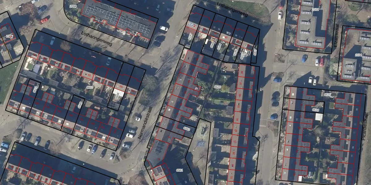 Het perceel waarop Normandiëstraat 82 staat heeft een oppervlakte van 2983 m². Dit is een zeer groot perceel. De perceeloppervlakte wordt geregistreerd door het Kadaster. Gedetailleerde informatie over de maten van dit perceel kunt u vinden in het rapport Kadastrale kaart met maatvoering van Normandiëstraat 82.