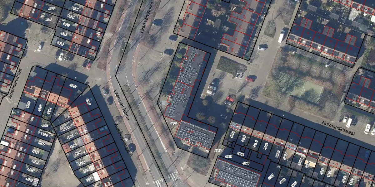 Het perceel waarop Normandiëstraat 91 staat heeft een oppervlakte van 1072 m². Dit is een zeer groot perceel. De perceeloppervlakte wordt geregistreerd door het Kadaster. Gedetailleerde informatie over de maten van dit perceel kunt u vinden in het rapport Kadastrale kaart met maatvoering van Normandiëstraat 91.