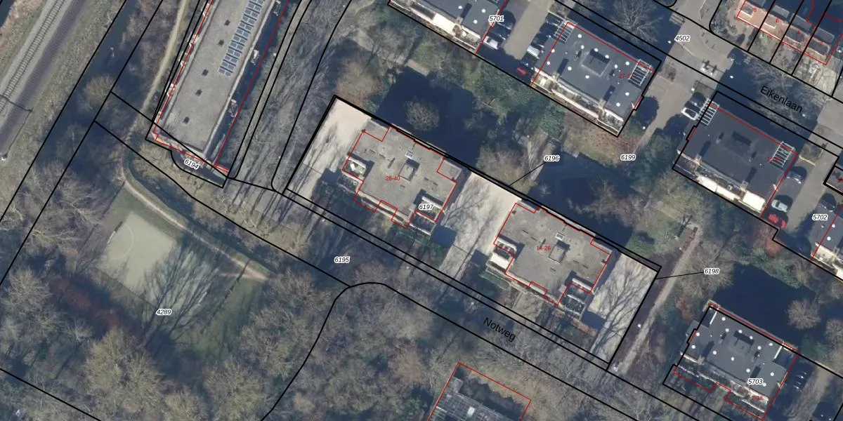 Notweg 28 is gelegen op kadastraal perceel AMR01E6197. Deze kadastrale aanduiding is uniek en wordt gebruikt door het Kadaster om eigendomsrechten en andere zakelijke rechten vast te leggen. Het perceel maakt onderdeel uit van de kadastrale gemeente Alkmaar.