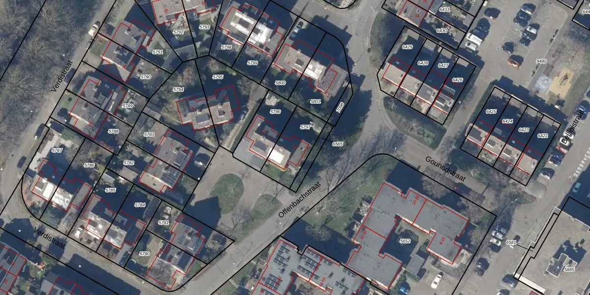 Het perceel waarop Offenbachstraat 15 staat heeft een oppervlakte van 299 m². Dit is een middelgroot perceel. De perceeloppervlakte wordt geregistreerd door het Kadaster. Gedetailleerde informatie over de maten van dit perceel kunt u vinden in het rapport Kadastrale kaart met maatvoering van Offenbachstraat 15.