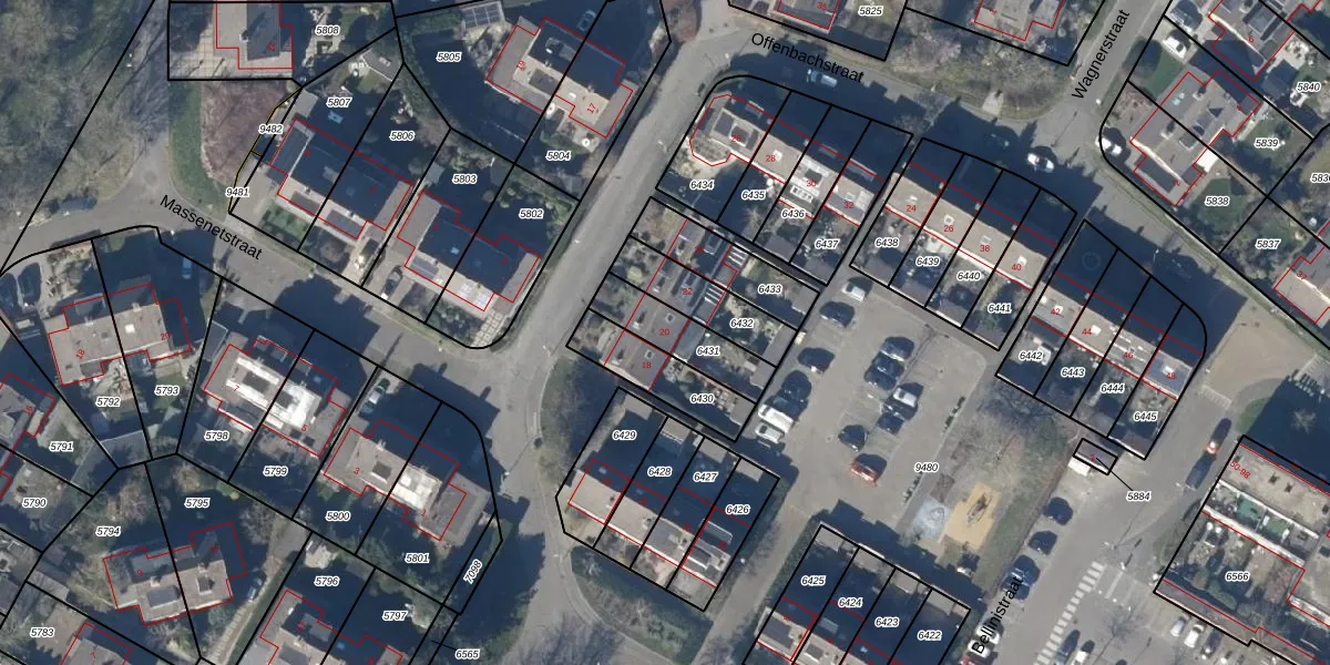 Gebruik de zoekbalk of klik op een perceel voor informatie over de adressen binnen dit perceel.