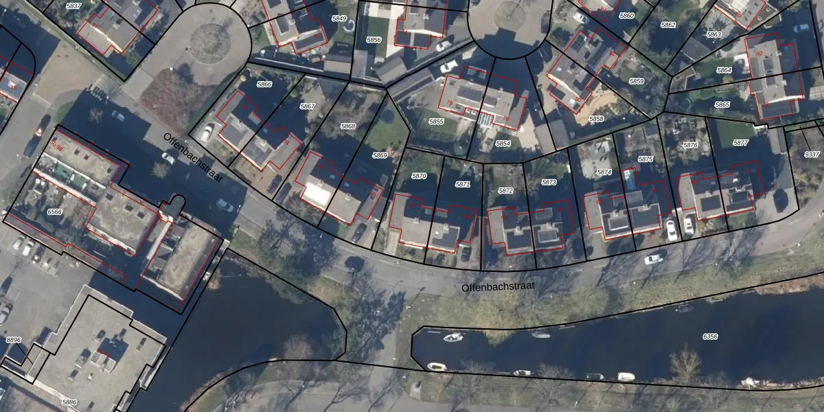 Het perceel waarop Offenbachstraat 57 staat heeft een oppervlakte van 307 m². Dit is een groot perceel. De perceeloppervlakte wordt geregistreerd door het Kadaster. Gedetailleerde informatie over de maten van dit perceel kunt u vinden in het rapport Kadastrale kaart met maatvoering van Offenbachstraat 57.