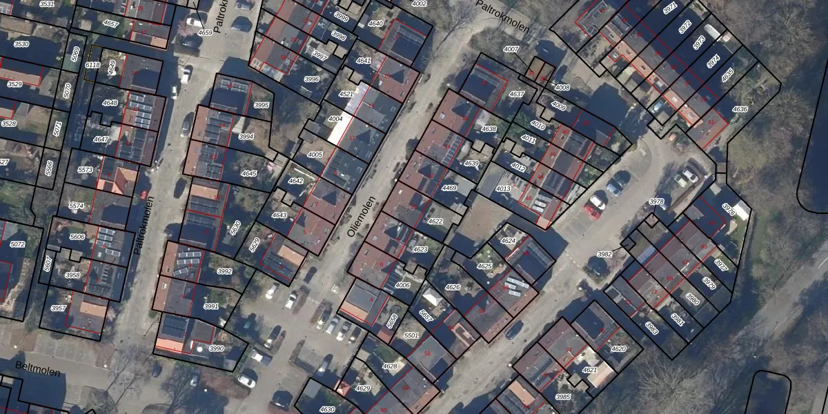 Gebruik de zoekbalk of klik op een perceel voor informatie over de adressen binnen dit perceel.