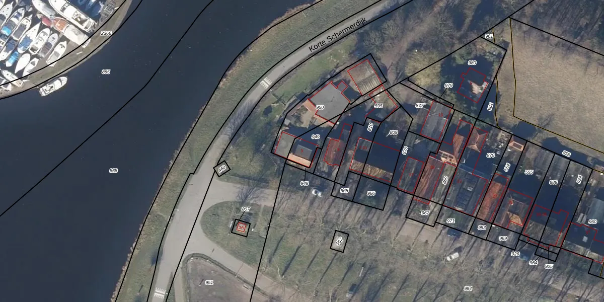 Gebruik de zoekbalk of klik op een perceel voor informatie over de adressen binnen dit perceel.