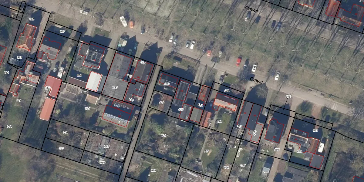 Het perceel waarop Omval 56 staat heeft een oppervlakte van 260 m². Dit is een middelgroot perceel. De perceeloppervlakte wordt geregistreerd door het Kadaster. Gedetailleerde informatie over de maten van dit perceel kunt u vinden in het rapport Kadastrale kaart met maatvoering van Omval 56.