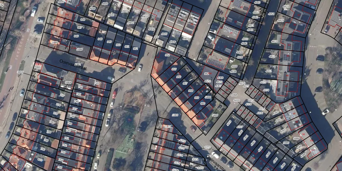 Gebruik de zoekbalk of klik op een perceel voor informatie over de adressen binnen dit perceel.