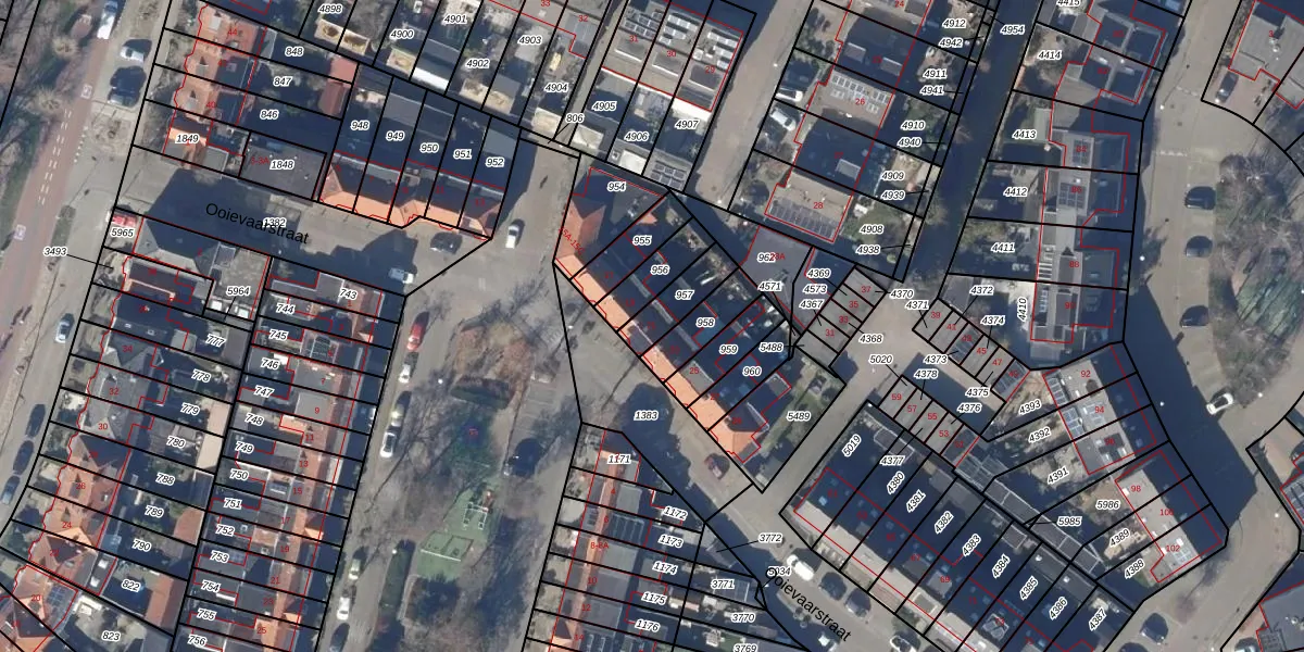 Gebruik de zoekbalk of klik op een perceel voor informatie over de adressen binnen dit perceel.