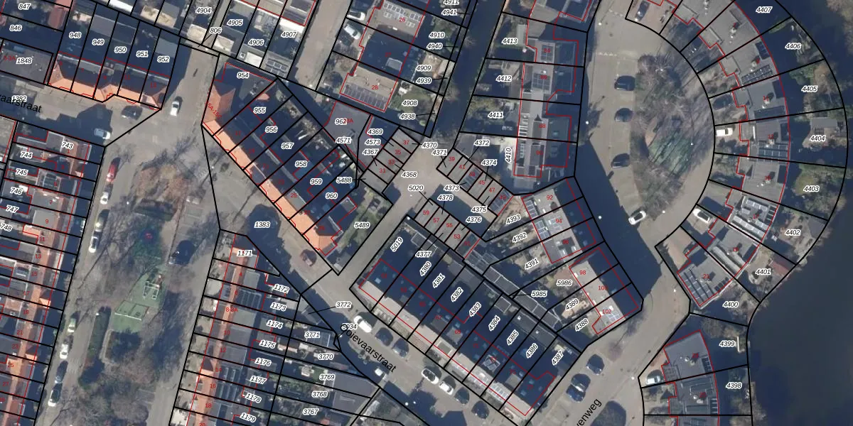 Gebruik de zoekbalk of klik op een perceel voor informatie over de adressen binnen dit perceel.