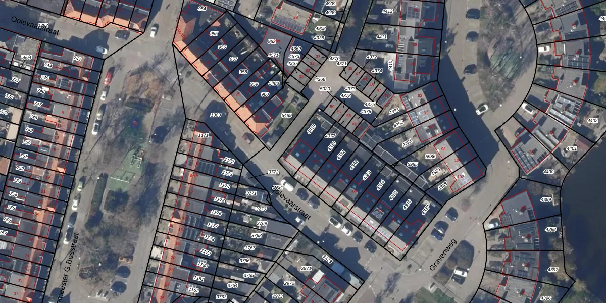Het perceel waarop Ooievaarstraat 61 staat heeft een oppervlakte van 164 m². Dit is een middelgroot perceel. De perceeloppervlakte wordt geregistreerd door het Kadaster. Gedetailleerde informatie over de maten van dit perceel kunt u vinden in het rapport Kadastrale kaart met maatvoering van Ooievaarstraat 61.