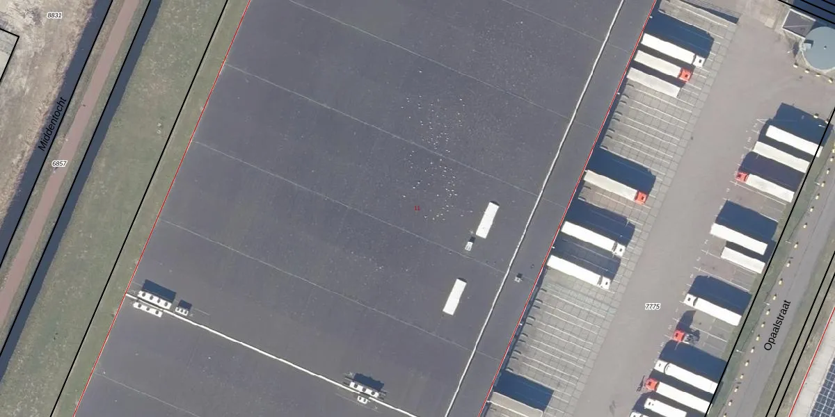 Het perceel waarop Opaalstraat 11 staat heeft een oppervlakte van 2,5 ha. Dit is een zeer groot perceel. De perceeloppervlakte wordt geregistreerd door het Kadaster. Gedetailleerde informatie over de maten van dit perceel kunt u vinden in het rapport Kadastrale kaart met maatvoering van Opaalstraat 11.