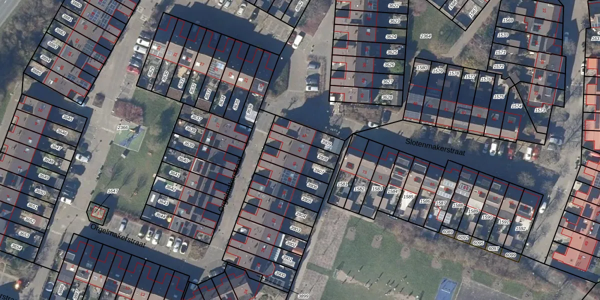 Gebruik de zoekbalk of klik op een perceel voor informatie over de adressen binnen dit perceel.