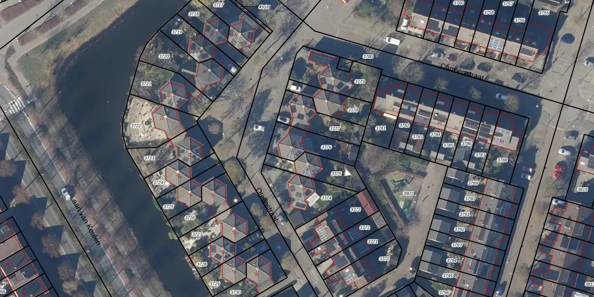 Gebruik de zoekbalk of klik op een perceel voor informatie over de adressen binnen dit perceel.