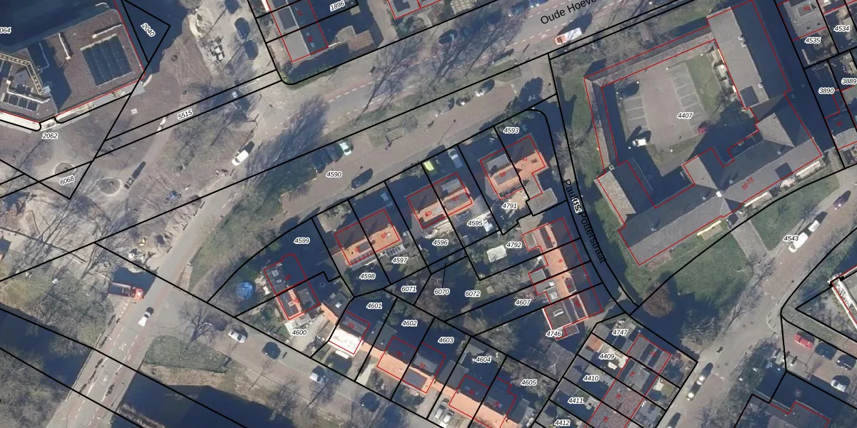 Gebruik de zoekbalk of klik op een perceel voor informatie over de adressen binnen dit perceel.