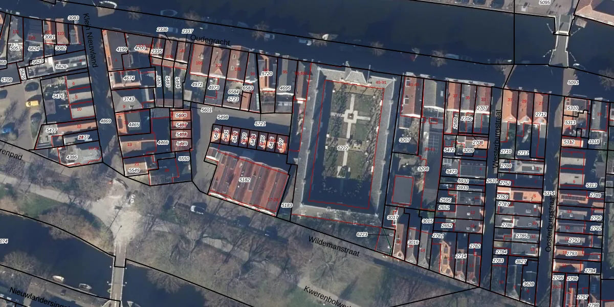 Het perceel waarop Oudegracht 77 staat heeft een oppervlakte van 1822 m². Dit is een zeer groot perceel. De perceeloppervlakte wordt geregistreerd door het Kadaster. Gedetailleerde informatie over de maten van dit perceel kunt u vinden in het rapport Kadastrale kaart met maatvoering van Oudegracht 77.